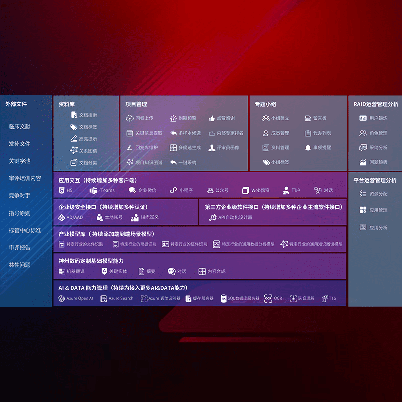 医疗器械产品上市前,,,要熟悉严格与繁复评审标准,,,整理分析监管机构指导文件中的海量信息。。企业急需一个智能化解决方案,,,,提升知识管理效率,,,提高评审通过率,,,以提升其市场竞争力。。。
